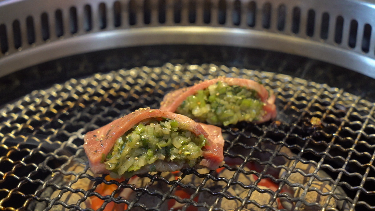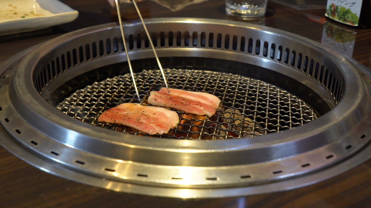 牛タン: 焼き網に乗せると、ジュワっと小気味良い音を立て、